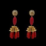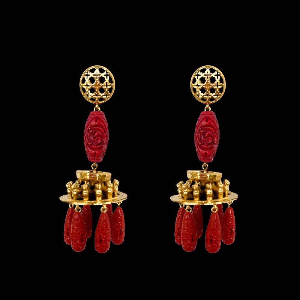 Each earring is meticulously crafted from silver, beautifully adorned with an 18k gold finish and striking coral accents.