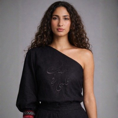 Al Nujum T shirt Robe is crafted from 100% pure organic cotton and french lace, offering comfort and style. It features an elegant embroidery of the timeless verse in Arabic: “حبك في قلبي كالنجم في السماء,” honoring the beloved poet Al Khansa. this t-shirt symbolizes the essence of this collection, blending cultural heritage with modern fashion.