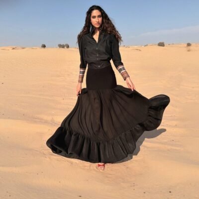 La Cordobesa is crafted from floaty silk chiffon, the skirt is designed in unbridled femininity as blend of spanish southern romance with nods the designer andalusianheritage