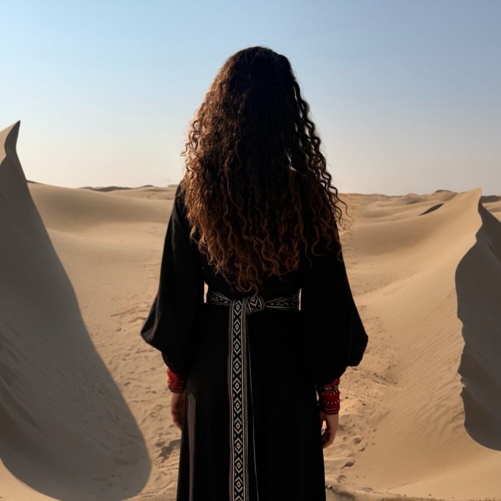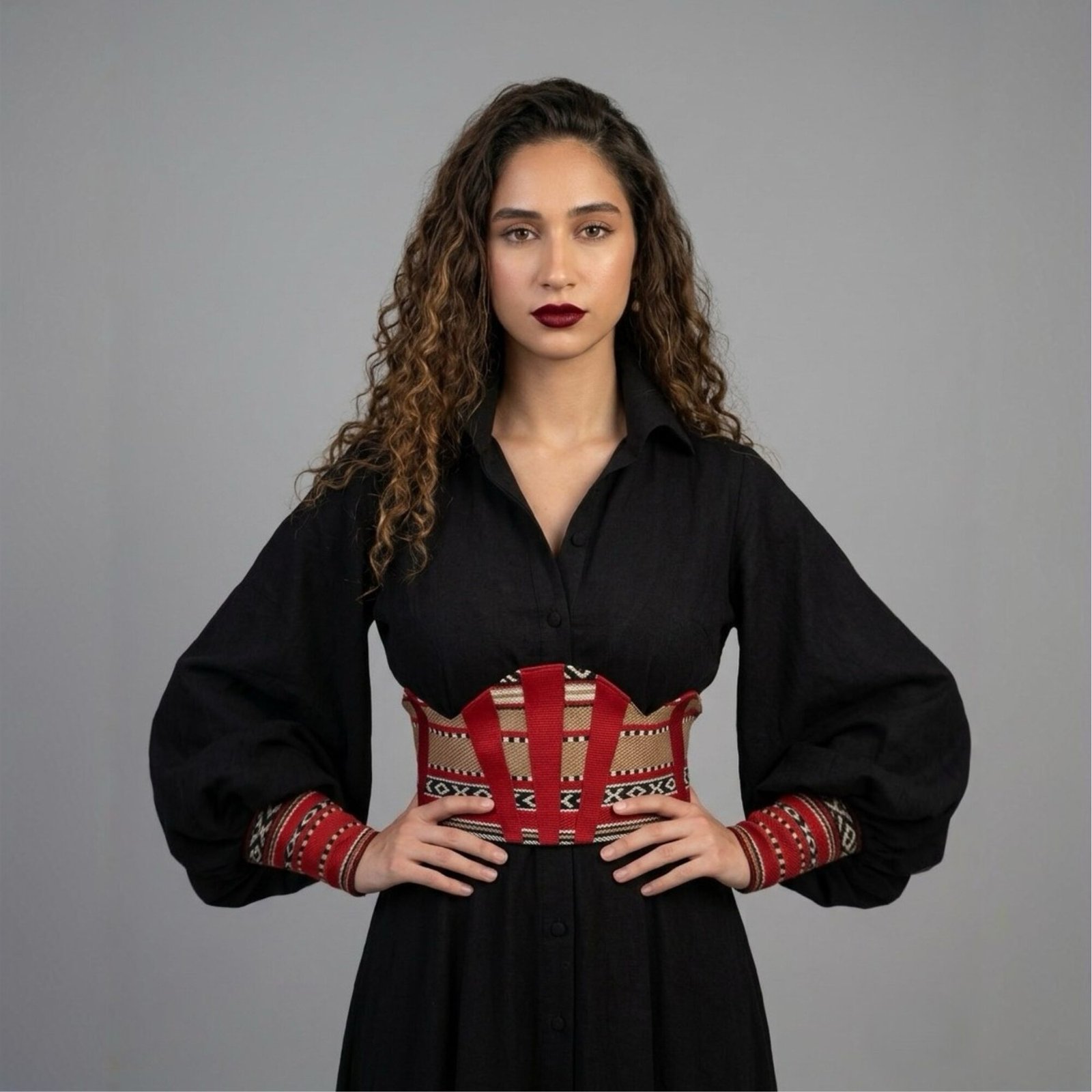 The Qurtoba Obi Belt is an exquisite accessory crafted from luxurious Sadu fabric, elegantly designed to reflect the architectural beauty of the Mosque of Córdoba in Spain. This unique belt showcases a stunning silhouette that embodies a perfect fusion of both Spanish and Arab cultures, marrying traditional craftsmanship with modern aesthetics.